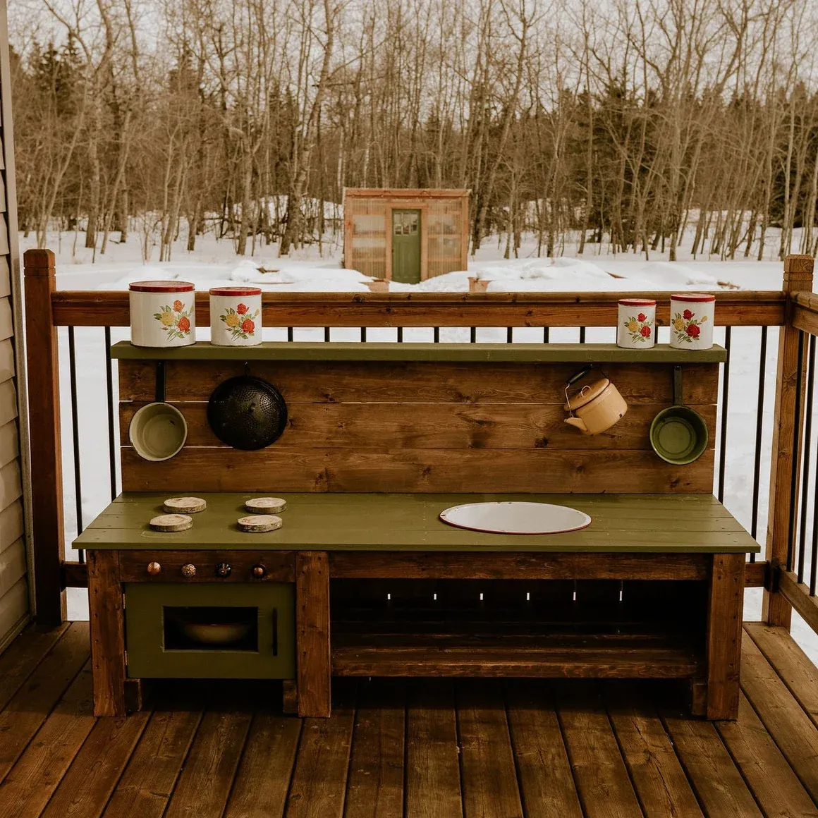 We’ve covered the benefits of parenting near friends. A huge part of this is being able to send your kids outside to play with other kids—bonus points if there’s a designated area to contain the craziness (and the mess). A mud kitchen does this perfectly.