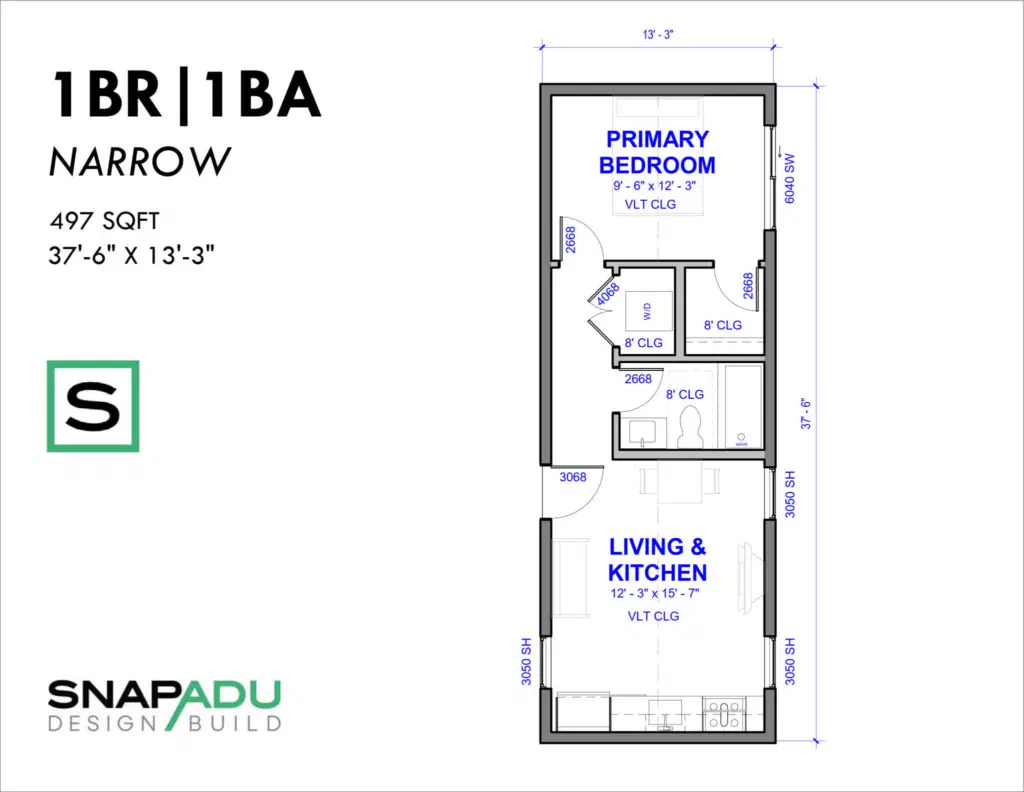 You don’t need tons of square footage to build an ADU that can comfortably house multiple people: