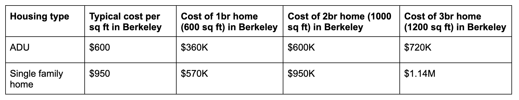 If you buy a 1200 sq ft house with enough land, you can add a 1200 sq ft ADU and on average each home costs (A+B)/2. And you and a friend can share in those savings.