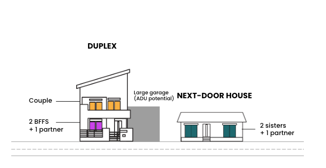 Joel and Sophia were interested in the idea of going in on a duplex with their friends as co-owners, but none of their friends, who were mostly artists and musicians, could afford it. As the most professionally stable ones in their group, Joel and Sophia had the means to purchase a property on their own, so they checked their friends’ comfort level with a landlord-tenant setup.