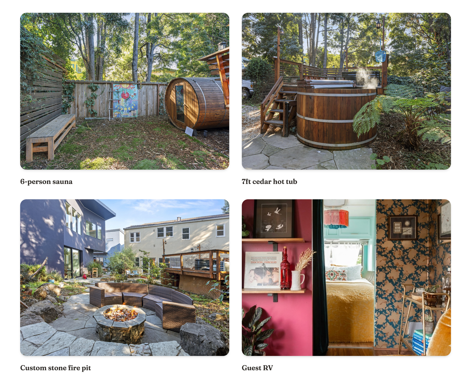 The sale includes seven private homes and a dense set of shared amenities: courtyards, a hot tub and sauna, an industrial hosting kitchen, and a set of spaces intentionally designed for overlap—meals, work, play, and rest. It’s set up for a group of friends, community, or extended family that wants both togetherness and private spaces to retreat to.